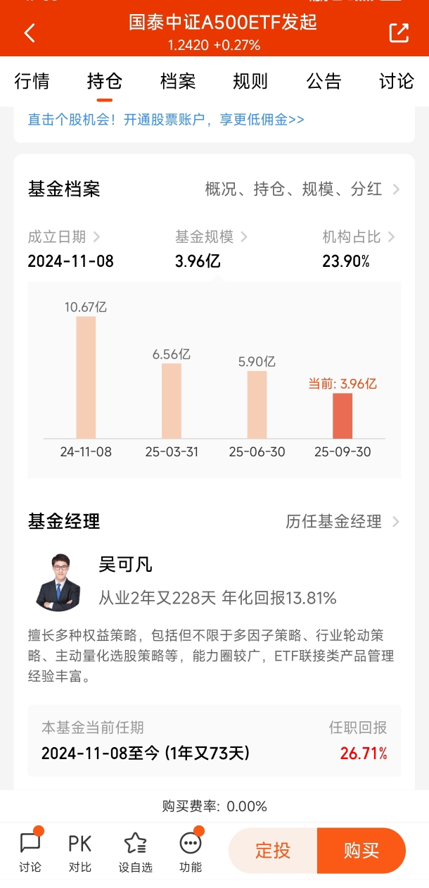 国泰基金成立于1998年,是国内首批成立的基金公司之一,在指数投资领域有着深厚积累。截至2025年11月30日,国泰基金管理的指数基金规模超过1200亿元,覆盖沪深300、中证500、创业板指等核心宽基指数。