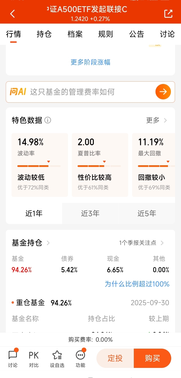 从估值角度看,虽然当前中证A500指数估值处于历史低位,但短期市场波动难以预测。投资者应根据自身的风险承受能力和投资目标,合理配置该基金的比例。