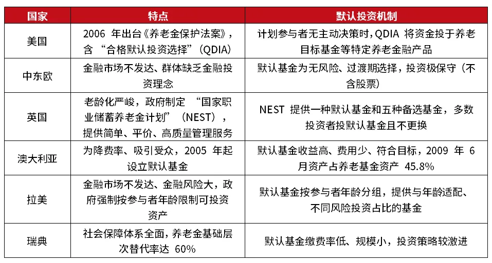 资料来源:中国市场《个人养老金默认投资机制的国际经验借鉴与启示》,2025.4.17