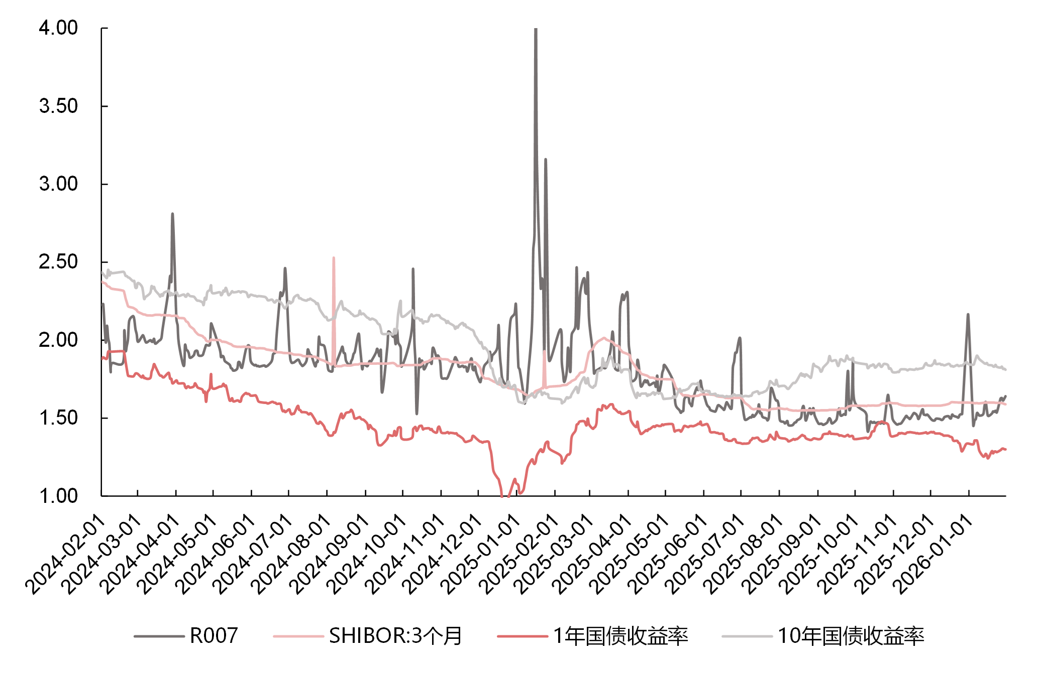 上上周债市情绪延续小幅修复,10Y国债到期收益率小幅下行,主要跟股市调整、流动性持续宽裕、供给强度低于预期等因素有关,交易情绪有所好转。往后看,后续需要重点关注几方面因素的影响:一是近期股票市场由强趋势转为震荡、但做多预期仍强,短期对于债市的冲击有所弱化,但仍需关注相关扰动;二是年初债券供给略低于此前市场预期,对于债市情绪的压制有所缓和。短期看,由于开年信贷投放情况还有待进一步跟踪,加上宏观数据处于真空期,信号偏紊乱,凝结共识可能仍需时间,短期债市可能仍以震荡为主,向上空间有限,但大幅向下也需进一步的催化,比如央行宽松信号进一步明确、股市转空等等。因此,策略应对方面,倾向于认为:杠杆仍可保持积极,配置和寻找结构性机会的思路依然有较强确定性,票息策略、杠杆策略可能仍然占优,久期策略对于交易的要求偏高。(数据来源:Wind)