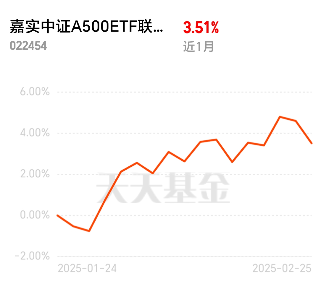 今天的市场表现暖洋洋的,$嘉实中证A500ETF联接C$ 表现也很棒,它跟踪的中证A500指数自从二月份以来涨幅累计达到4%,它的成分股覆盖各行业龙头,盈利的潜力还是蛮大的,宏观上政策利好也不断,外资持续流入,我后续持续看好它哦。