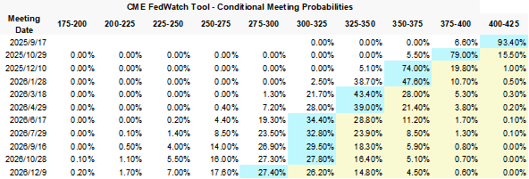 数据来源:CME FedWatch,截至2025年9月12日