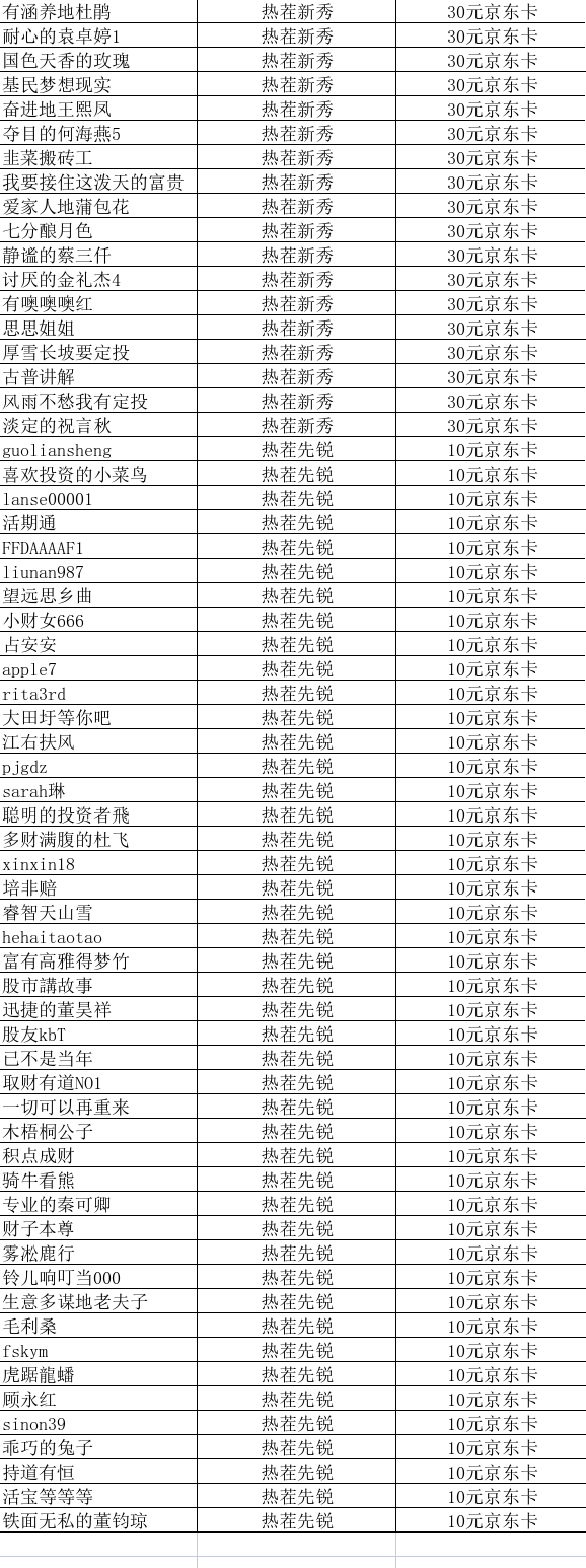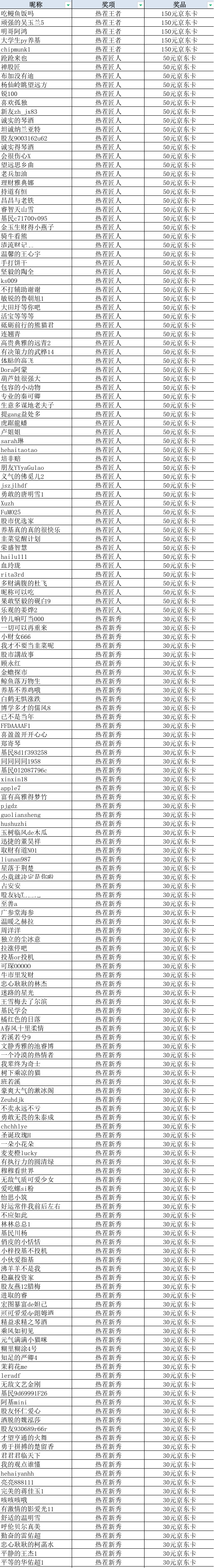 为回馈小伙伴们的热情,现根据活动规则公布获奖用户名单:
