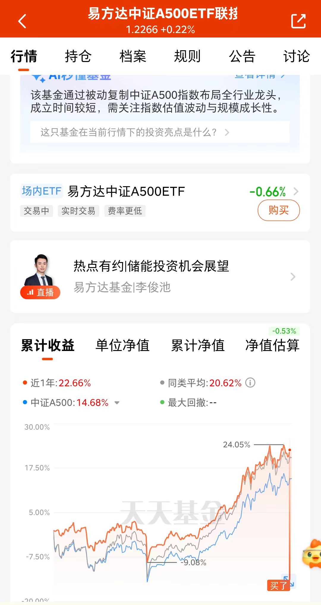 宝子们,昨天沪指再次涨超4000点,今天又震荡了,牛市行情,市场震荡加剧,我觉得那就不做风格轮动,我打算把核心仓位切换至A500,宽基指数更善于捕捉趋势性行情,兼具防御韧性与成长潜力。我就是加仓了$易方达中证A500ETF联接A(OTCFUND|022459)$,持仓体验不错