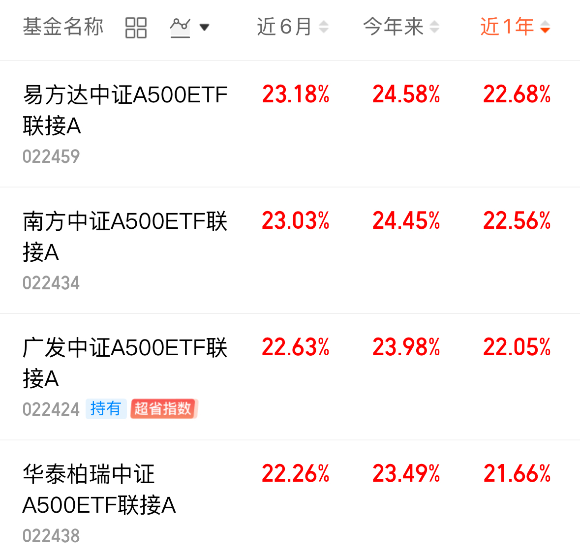 易方达作为头部基金公司,指数投资经验丰富,旗下产品跟踪精准度高,能最大程度复刻中证A500的收益。而且产品口碑过硬,A类份额近1年涨幅22.68%,跑赢市场大多数同类。我投的是C类份额免申购费,持有满7天免赎回费。不管是想短期把握跨年行情,还是长期作为核心底仓,都挺合适。