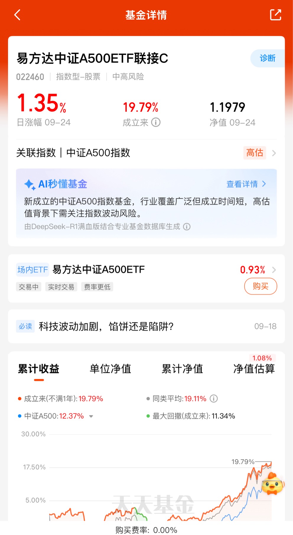 值得关注的是,该指数今年以来涨幅已接近20%,许多投资者在频繁交易后往往发现,其收益反而未能跑赢这只“不动如山”的宽基指数。$易方达中证A500ETF联接C$