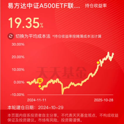 我自己这边一直比较稳,之前上车的$易方达中证A500ETF联接C(OTCFUND|022460)$,也有快20%的持仓收益率,整体上和大盘保持的差不多收益率水平。恭喜当时一起和我上车,并持有到现在的兄弟。