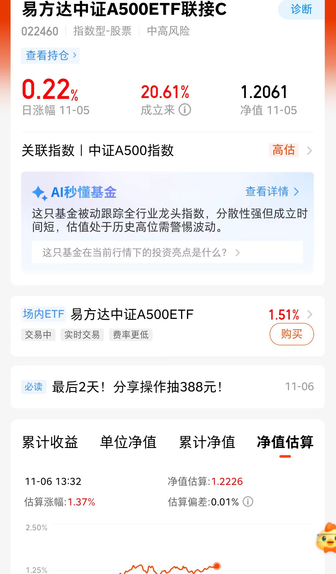 我关注到了$易方达中证A500ETF联接C(OTCFUND|022460)$,业绩优秀,我先加仓了。
