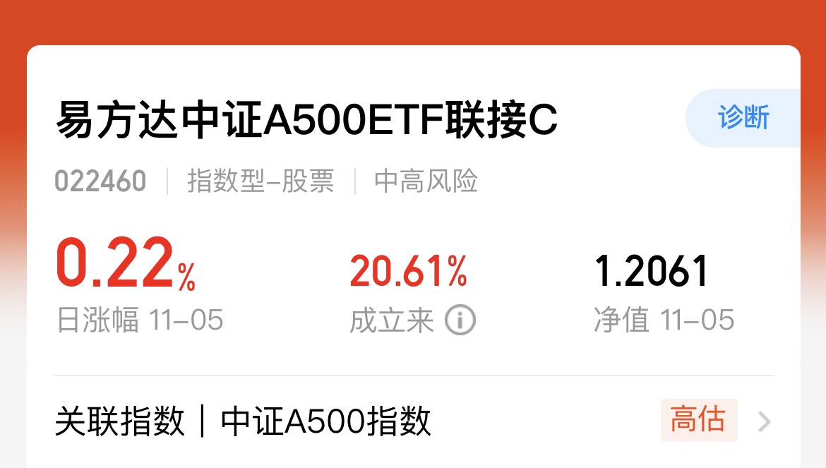 最近市场的波动还是挺大的,昨天以为是要吃面了,结果尾盘的时候突然拉升了,今天倒是还可以再这种行情一下,我觉得追热点的风险有点大,还是分散投资比较可靠,我持有的这一个$易方达中证A500ETF联接C$ 这只基金今天估值上涨1.38%这个基金跟踪的A 500指数覆盖了人工智能,新能源,医药,创新等多个科技领域,不把鸡蛋放在同一个篮子里,刚好适合我先加了一笔