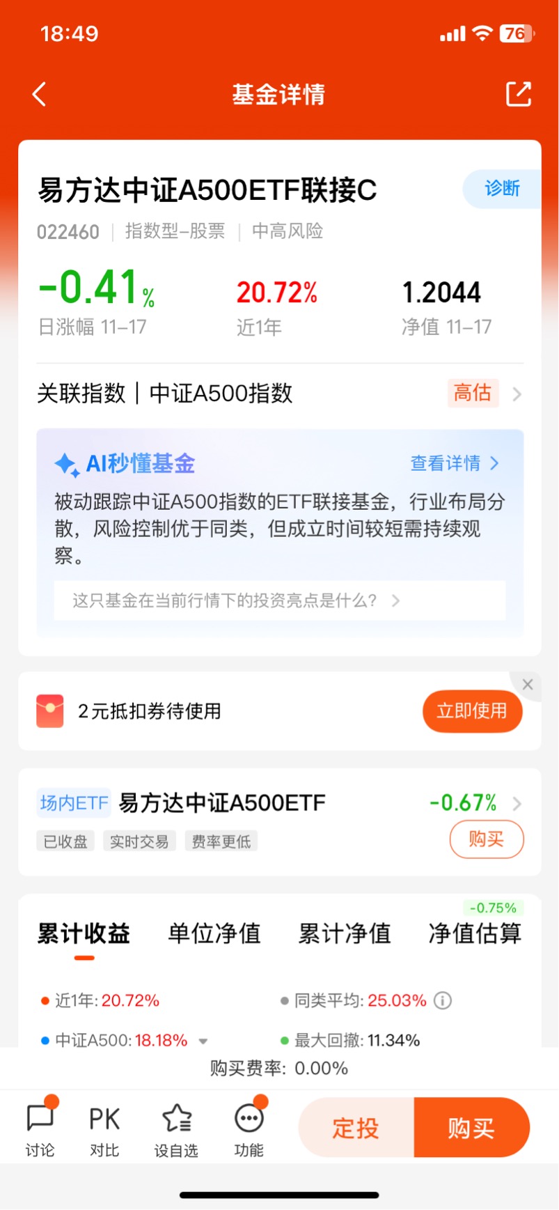 $易方达中证A500ETF联接C$ 是头部基金公司的优质产品,管理团队的指数管理经验丰富,基金经理庞亚平先生拥有9年指数基金管理经验,管理规模超300亿,擅长ETF产品运作。该基金适合作为组合中的风格平衡工具,特别是看好中盘股估值修复行情的投资者。当前市场4000点上下波动,该基金能帮助我们投资者从容应对,获得稳健的收益。
