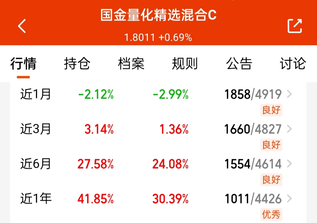 量化基这轮也调整不少了,还拿了些$国金量化精选混合C$ ,限额要打开了,准备冲起来,和量化多因子同策略,业绩也杠杠滴
