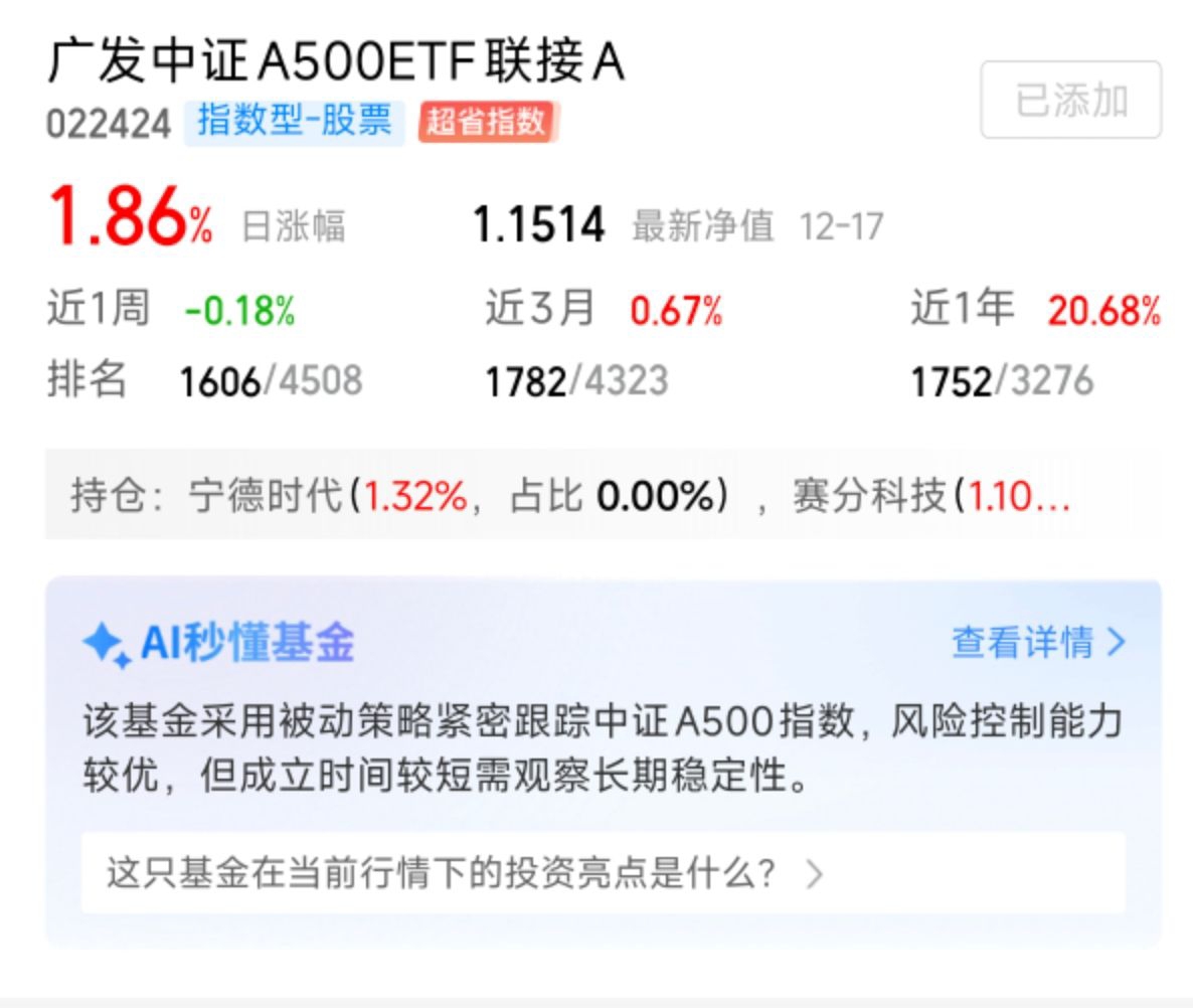 一直以为A类就是要付申购费,现在广发A500这个A份额在活动期间免了,如果打算持有超过一年,没有赎回费,总费率确实低$广发中证A500ETF联接A$
