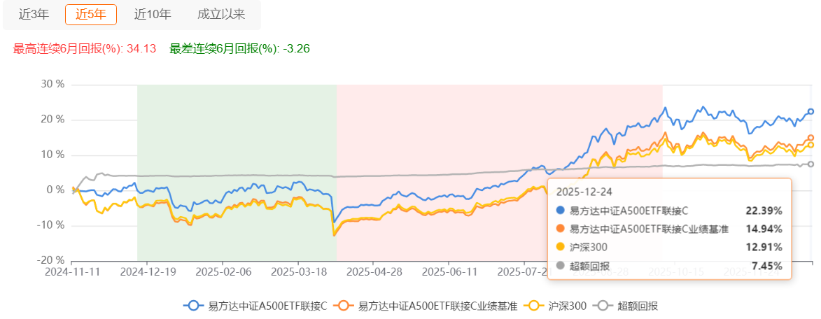而跟踪中证A500指数的易方达中证A500ETF联接C(022460)也很突出: