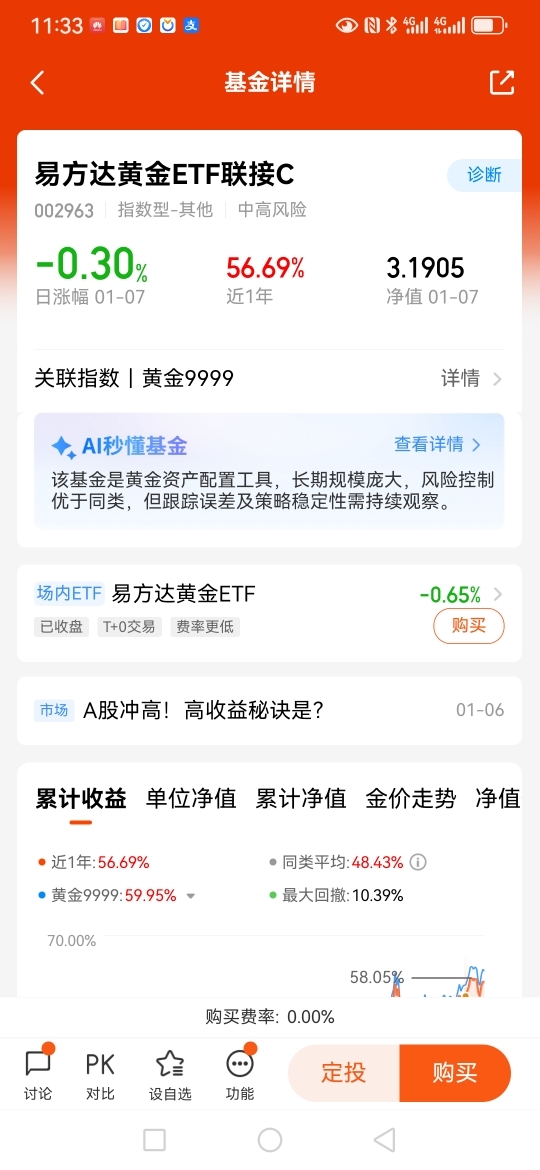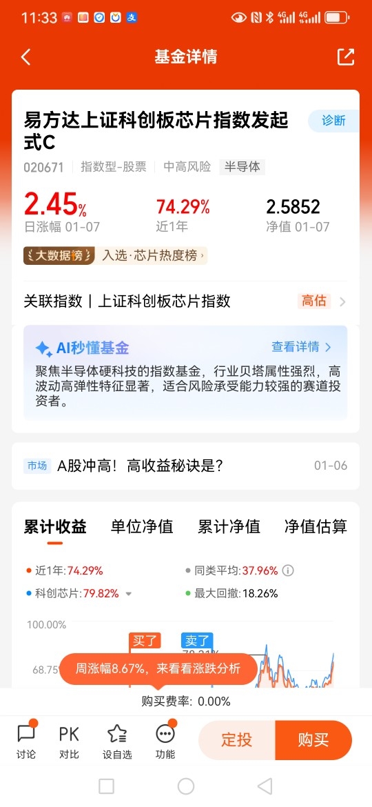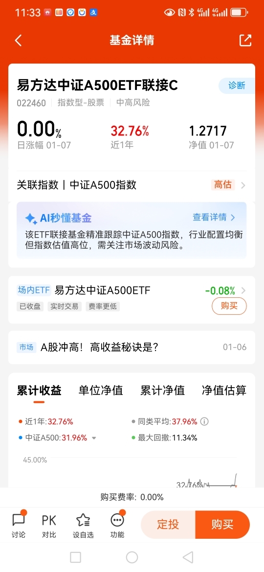 我最得意的操作是投资了$易方达中证A500ETF联接C$,获得了超过百分之三十的