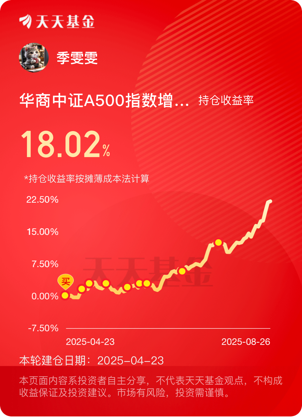 宽基指数拿着就是省心,尤其像A500这样的核心指数,长持差不了$华商中证A500指数增强C$ #晒收益#