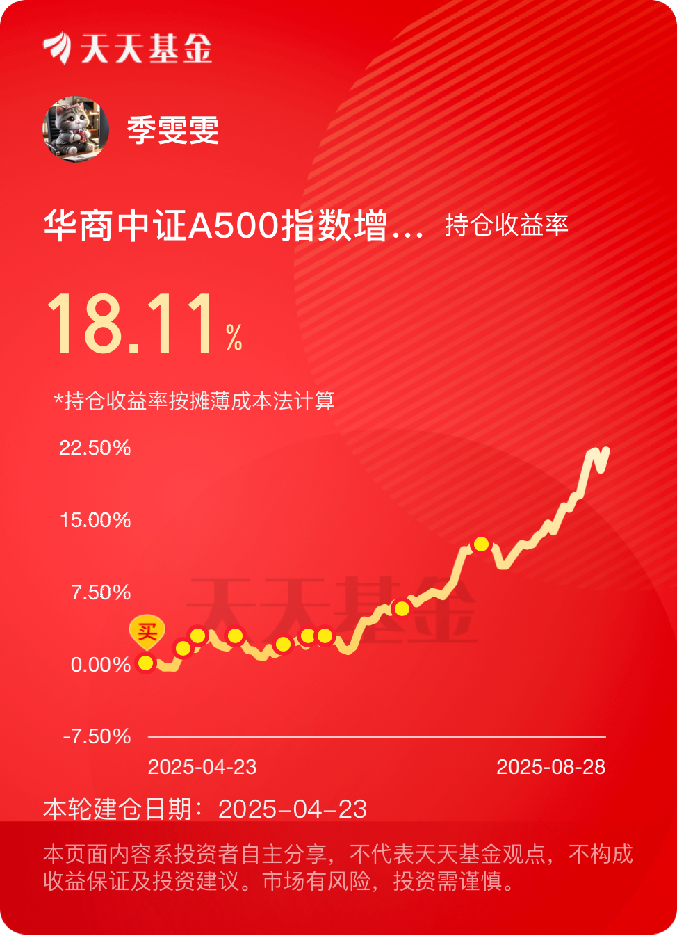 市场情绪持续回暖中,继续看好下半年的行情,分批买起来$华商中证A500指数增强C