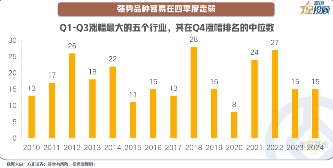 不过,尽管年末行情往往较好,但把握起来难度不小,主要原因是前三个季度的强势品种容易在四季度走弱,而前三个季度的弱势品种在四季度也不强,真正表现好的可能是此前不温不火的品类,挑选难度会相应较大。究其原因,或是临近年末,为了提升排名,机构资金“各显神通”,做最后的努力。