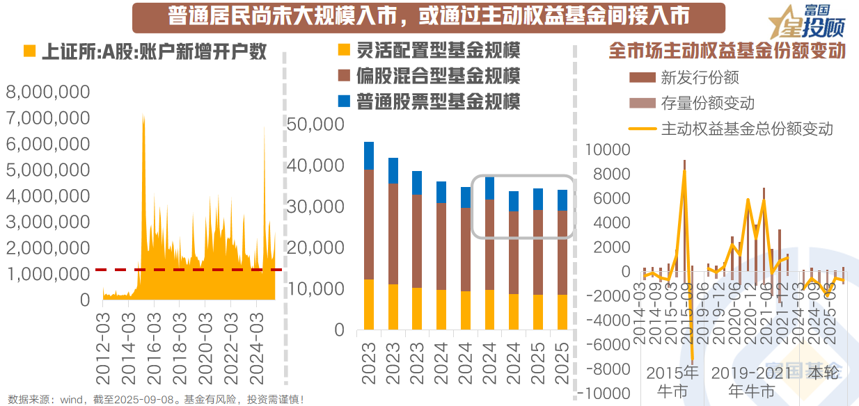 普通居民尚未大规模入市,或通过主动权益基金间接入市