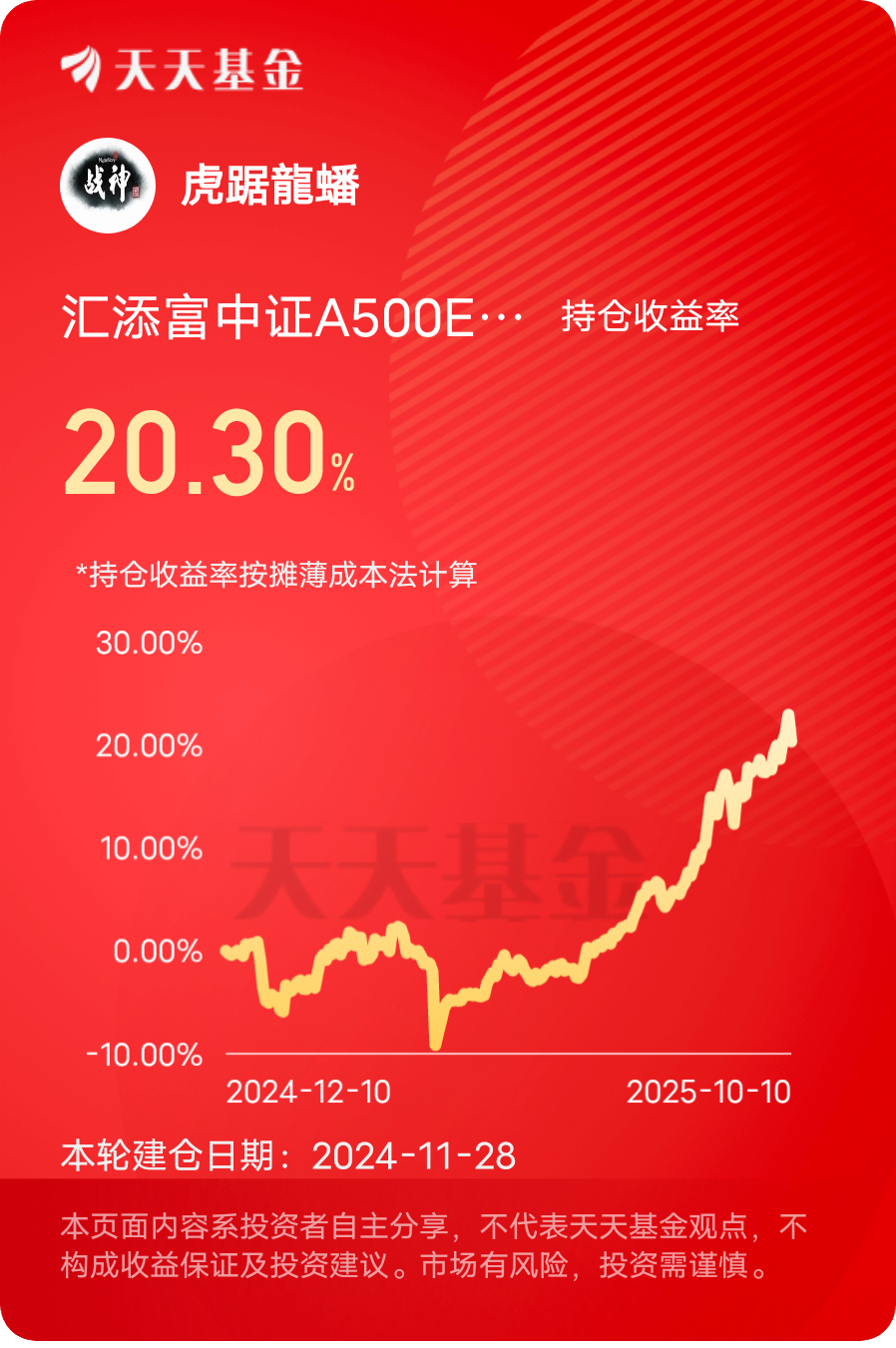 相关基金的持有体验:基民小虎是汇添富基金的铁粉,一直定投持有$汇添富沪深300ETF发起式联接C$ $汇添富中证A500ETF联接C$ $汇添富港股红利ETF联接C$ $汇添富纳斯达克100ETF发起式联接(QDII)人民币C$ 等多只基金,收益和体验都非常好!我会继续定投、买入汇添富基金产品,并长期坚定持有!@汇添富基金