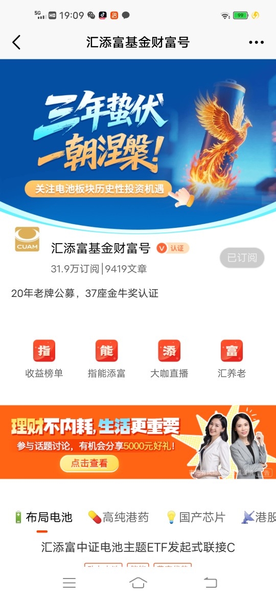#谁玩理财还内耗呢# #汇财友道# 基民小虎的投资人设是 “应卷尽卷派”!假期重点关注了固态电池和半导体芯片方面的消息,看好这两个热点板块,下周打算开始定投$汇添富中证电池主题ETF发起式联接C$$汇添富上证科创板芯片ETF发起式联接C$,市场回调就是倒车接人机会!