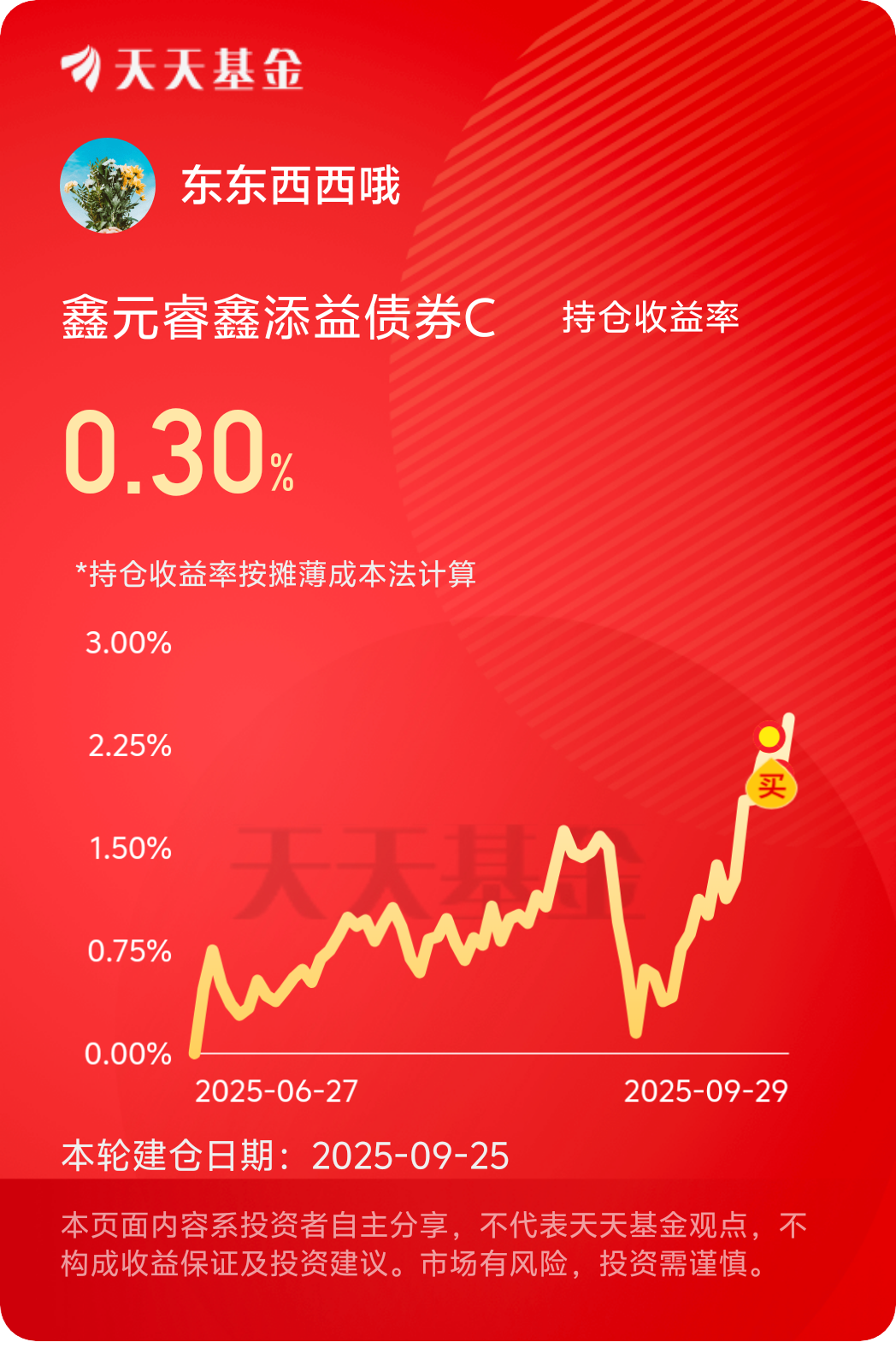 就喜欢这种稳稳的幸福,今天债市整体走高,能收不少蛋$鑫元睿鑫添益债券C$ #晒收益#