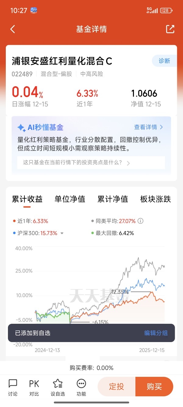 孙总,您曾提到基金采用多重策略,如同精密齿轮咬合般捕捉市场机会。但近期市场剧烈震荡中,浦银安盛红利量化C近一周出现下跌,而同类产品平均回撤更大。我们好奇: