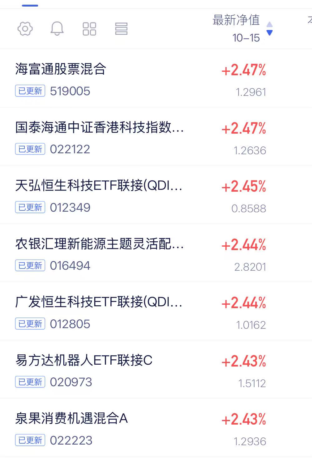 科技这这两天杀得有些狠,不过科技板块今天又传利好,主要集中在半导体和机器人上,所以我认为科技不会选择深跌,今年大行情续下没这么容易凉。,我从基金的净值看,$海富通股票混合$ 今天抢先反弹2.47%,比港股还能涨,近期回调的比例不多,反而今天反弹力度超过了大部分科技类指数,近一年上涨56.01%,而恒科近一年也才36.49%。
