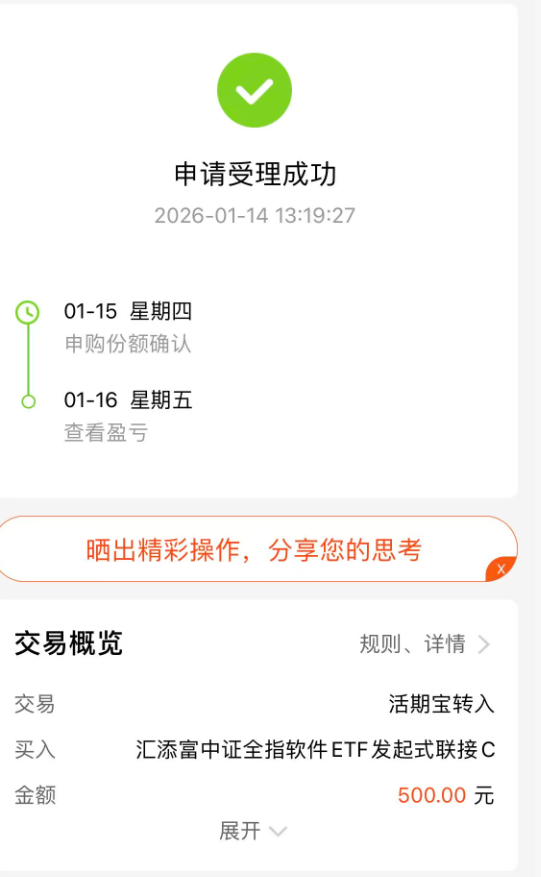 今天行情不错,三大指数集体上涨,各大科技细分板块的反弹也很给力,主线确实很强,今天加$汇添富中证全指软件ETF发起式联接C(OTCFUND|023255)$,估值涨近4%,说实话昨天调整没加确实后悔,那就先建个底仓,之后继续布局!这只基金覆盖软件开发领域的龙头企业,成分股包括科大讯飞、金山办公、同花顺、恒生电子等,持仓集中度高爆发力强,近一周+10.49%,近一个月+20.22%,近期业绩表现优秀,赚钱能力强。