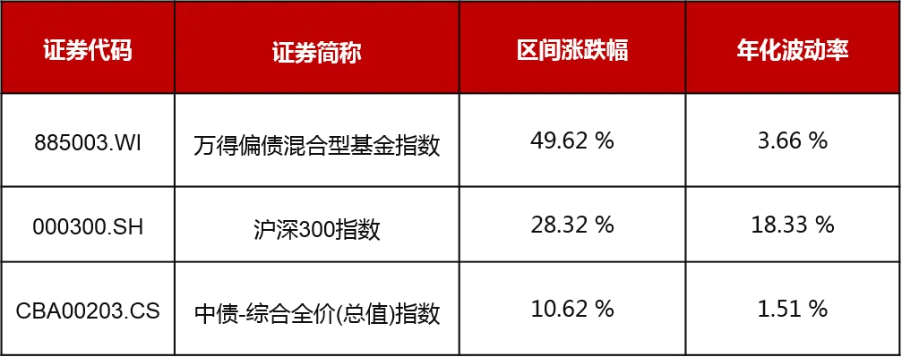 图:过去十年偏债混合基金指数VS沪深300、中债综合全价(总值)指数走势