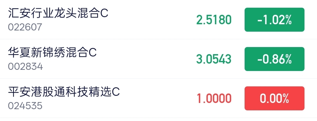 $汇安行业龙头混合C$ -1.02%,要加油哦