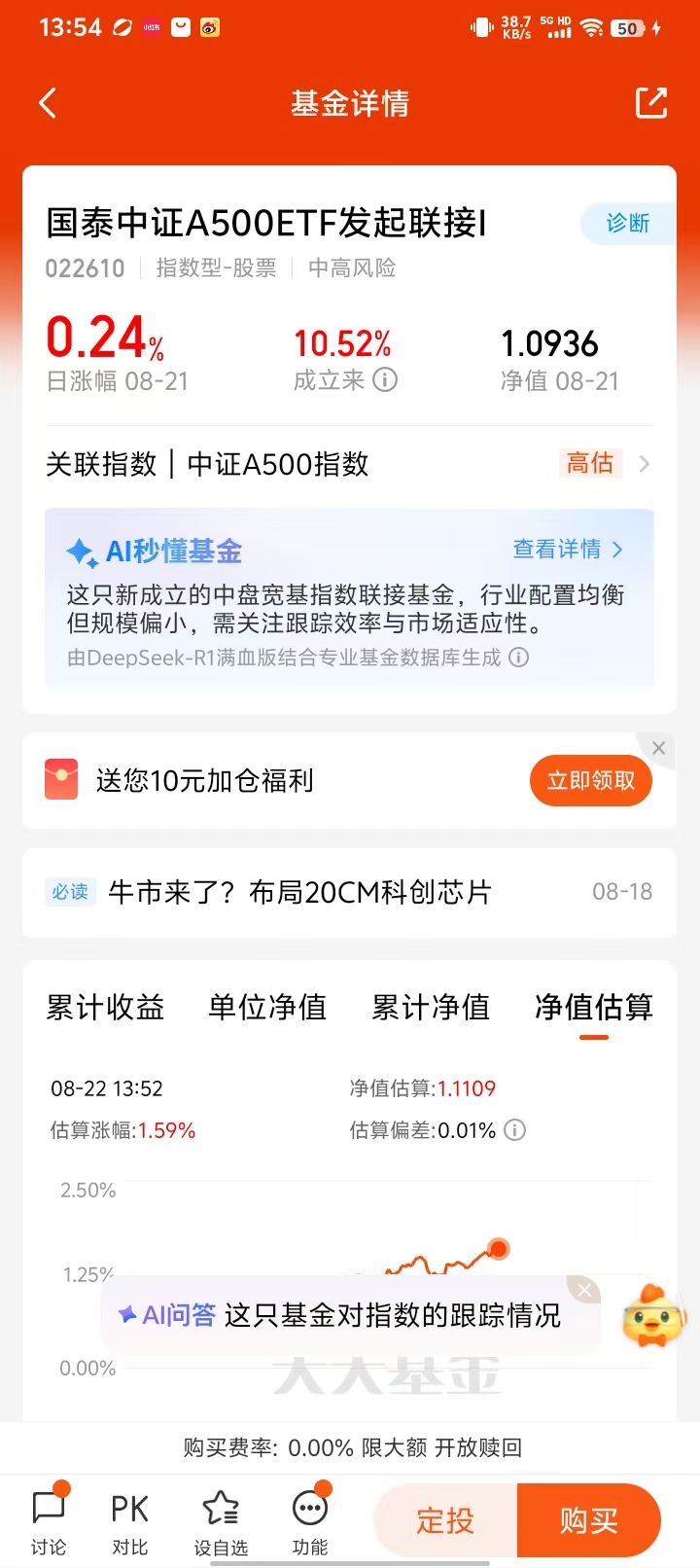 $国泰中证A500ETF发起联接I(OTCFUND|022610)$