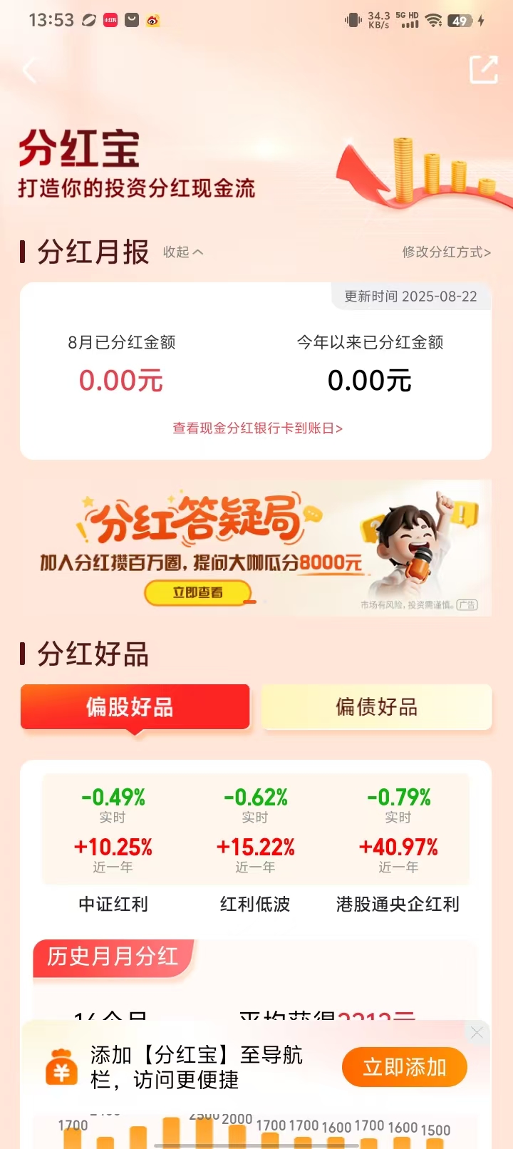 保守目标:假设年化股息率为3%(对标指数),若投资10万元,年分红收入约3000元。这一目标相对保守,主要考虑基金成立时间较短,分红历史数据有限,且市场环境存在不确定性。