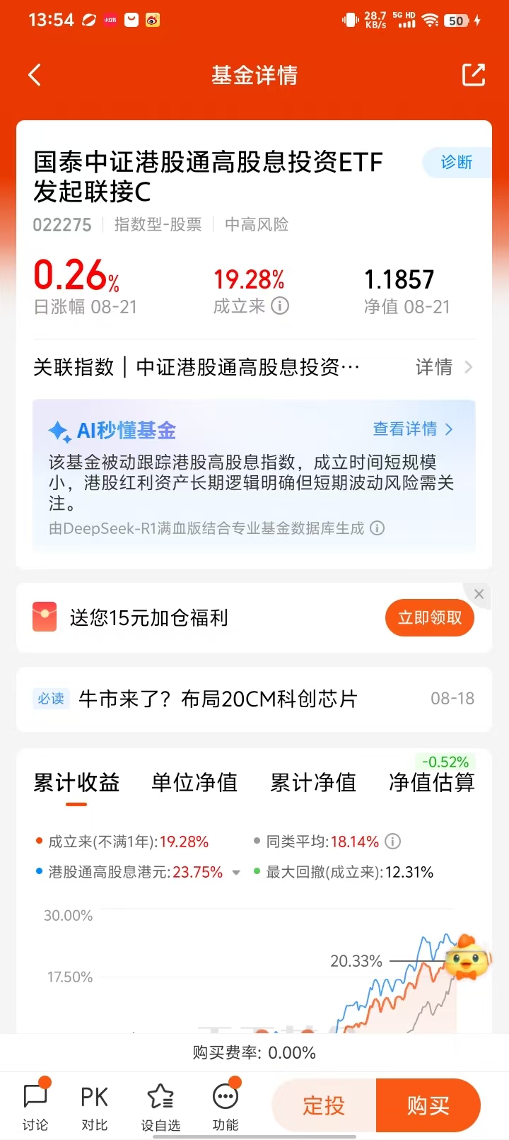 $国泰中证港股通高股息投资ETF发起联接C(OTCFUND|022275)$
