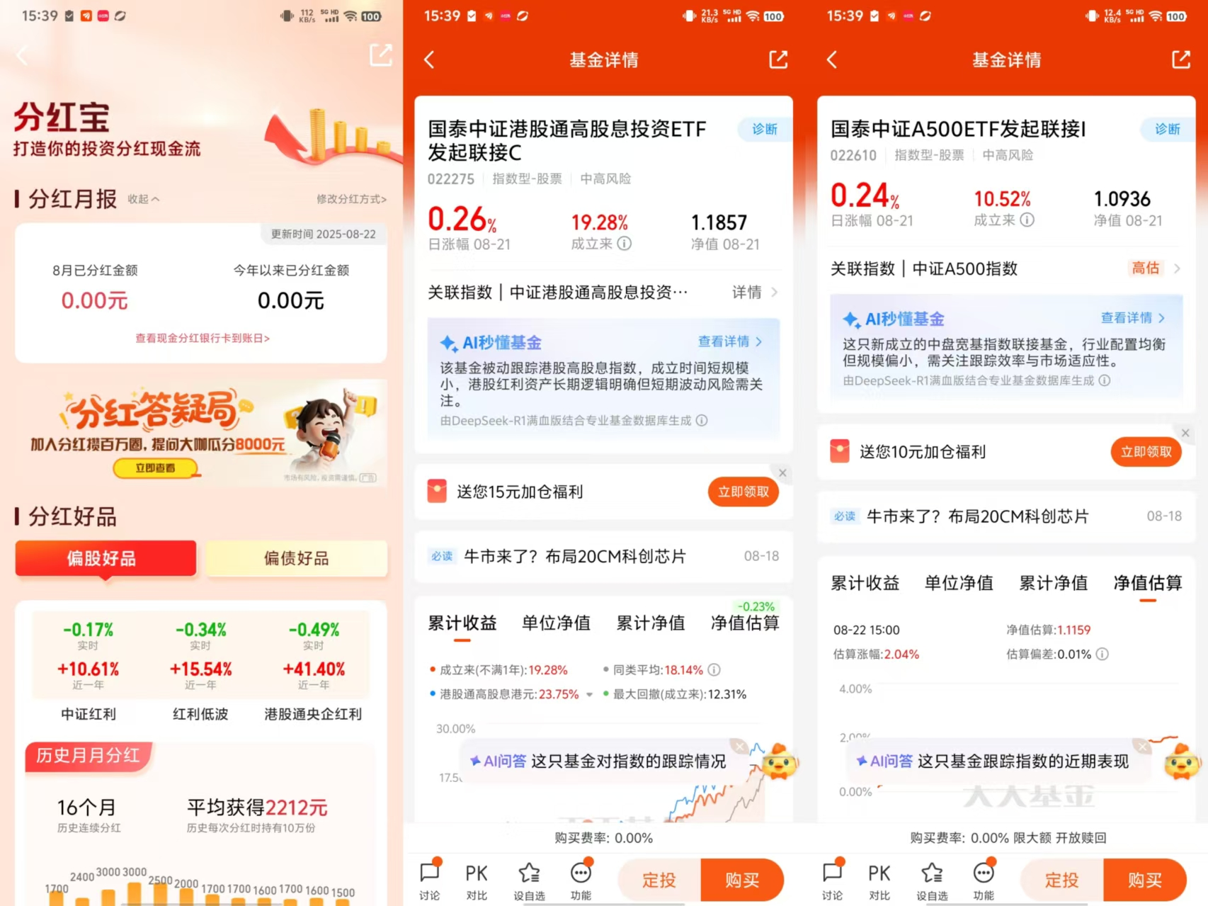A500ETF的成长性与港股高股息的稳定性形成互补,红利再投资与低费率策略最大化长期收益,而分散配置降低单一市场风险。这种组合既符合“抗风险、稳收益”的需求,又能通过复利效应实现财富的稳健增长。@国泰基金