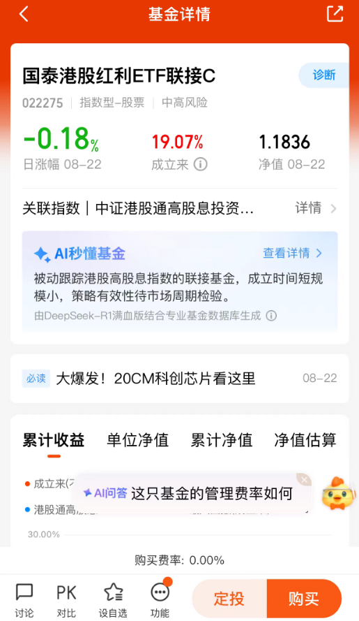 $国泰港股红利ETF联接C(OTCFUND|022275)$