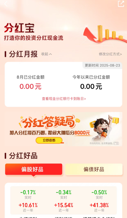 分红产品通过定期派息降低基金净值波动对心理的影响。2025年市场震荡期间,该基金通过月度分红为投资者提供“心理安慰”,减少因净值回撤而赎回的概率,从而避免“低位离场”的损失。中证A500指数成分股中,新兴行业龙头占比高,且受益于“新国九条”对分红的鼓励政策。选择此类产品,既能分享企业盈利增长的红利,又能通过政策导向提升分红确定性,实现“双轮驱动”收益。@国泰基金