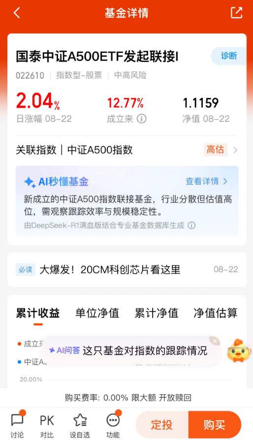 $国泰中证A500ETF发起联接I(OTCFUND|022610)$
