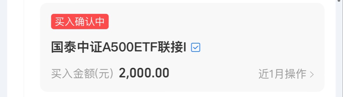 $国泰中证A500ETF发起联接I$ +2K,上周大盘冲上了4000点,但是板块分化还是比较严重的,能否实现有效突破仍需后市量能配合的检验。但中长期来看,A股慢牛行情还是值得期待的,回调或是机会。今天上车了A500,它是一只成长型宽基,跟踪的是中证A500指数,覆盖了各行业的龙头,包括了新能源,光伏设备,电池制造等,都是今年的热门主线,因为持仓行业分布比较均衡,有效的分散了风险。中美关税磋商谈的还不错,所以后面股市还是有机会继续走强,当下修复行情我会选择波动小一些的国泰中证A500,它近半年涨幅25.97%,跑赢同期的沪深300指数,而且属于7免的,操作上也更灵活,今天逢低上车一笔。