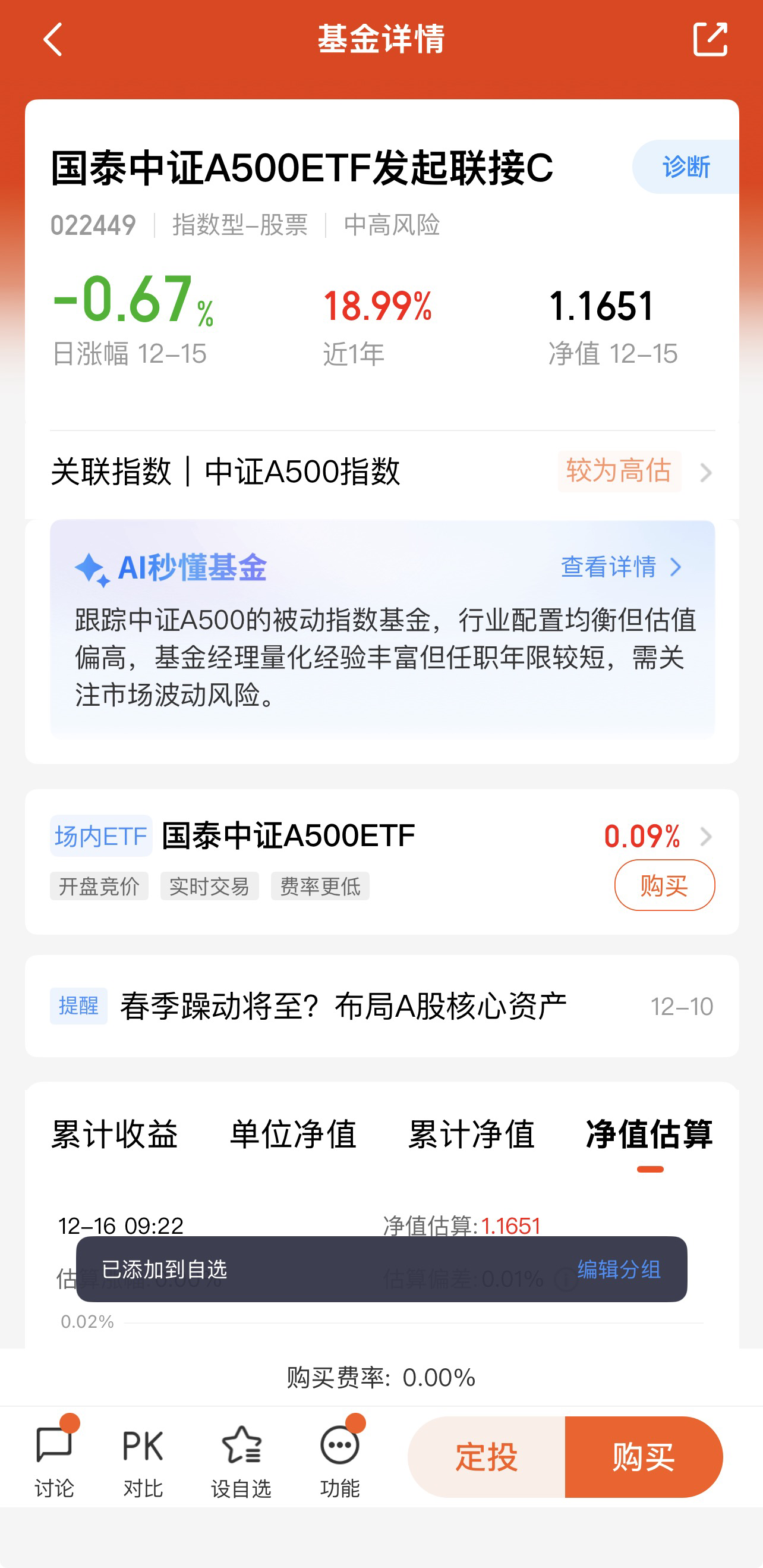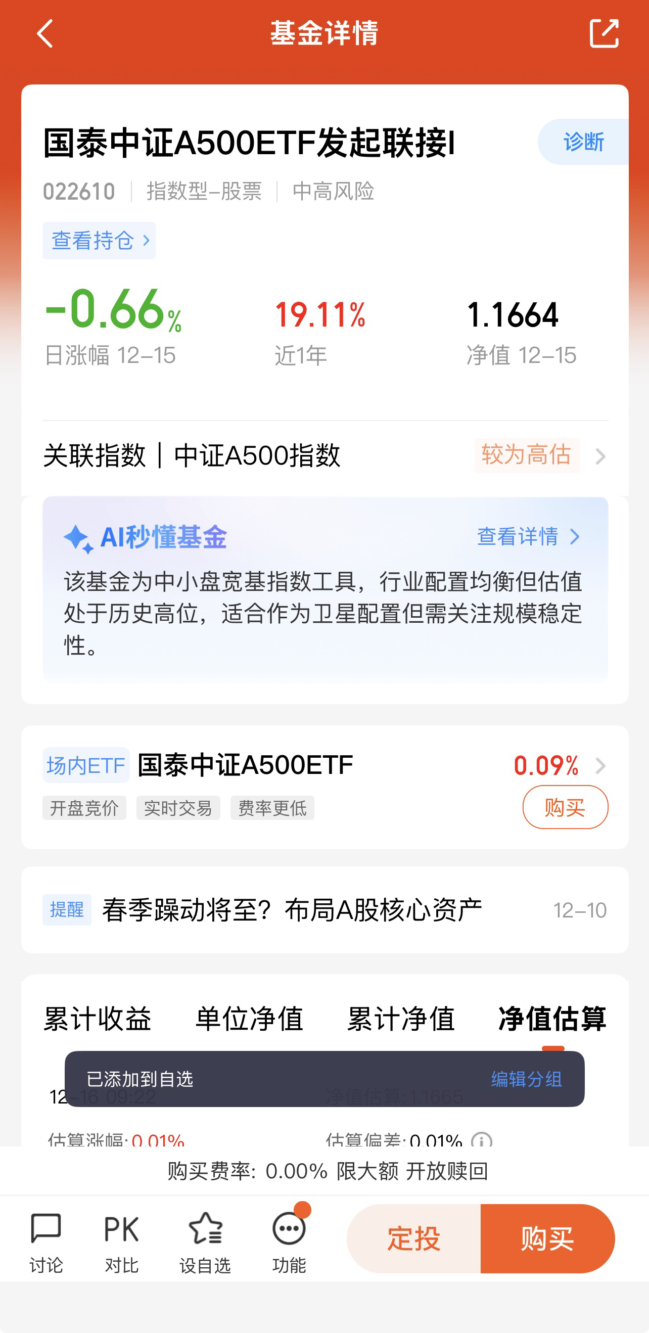 骑牛看熊持有$国泰中证A500ETF发起联接A$ 与国泰中证A500ETF发起联接I(022610),也获得了不错的投资收益。$国泰中证A500ETF发起联接I$ 作为跟踪中证 A500 指数的 ETF 联接基金,兼具标的指数优势、自身费率与运作优势,还有亮眼的业绩表现,对普通投资者十分友好,今天来聊聊国泰中证A500ETF发起联接I(022610)的投资优势解读: