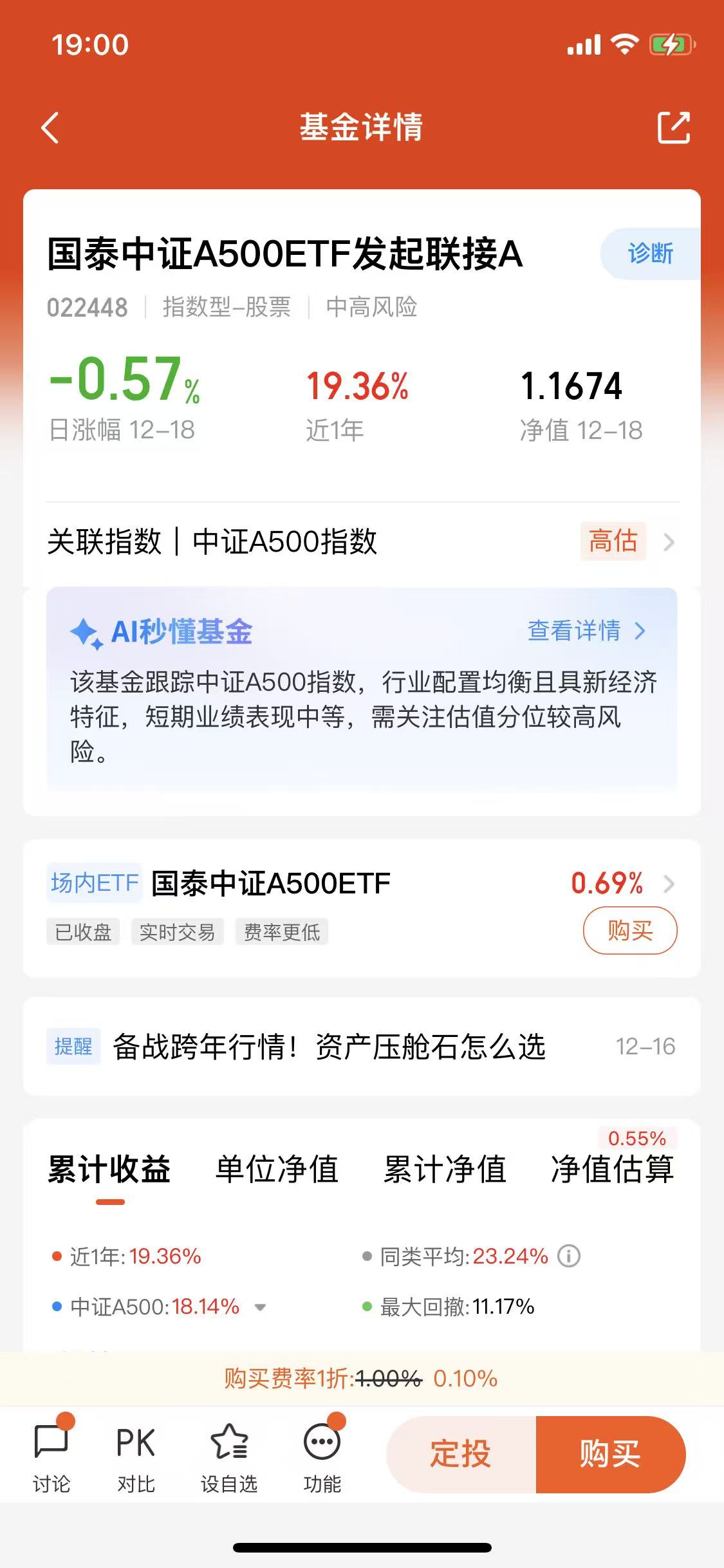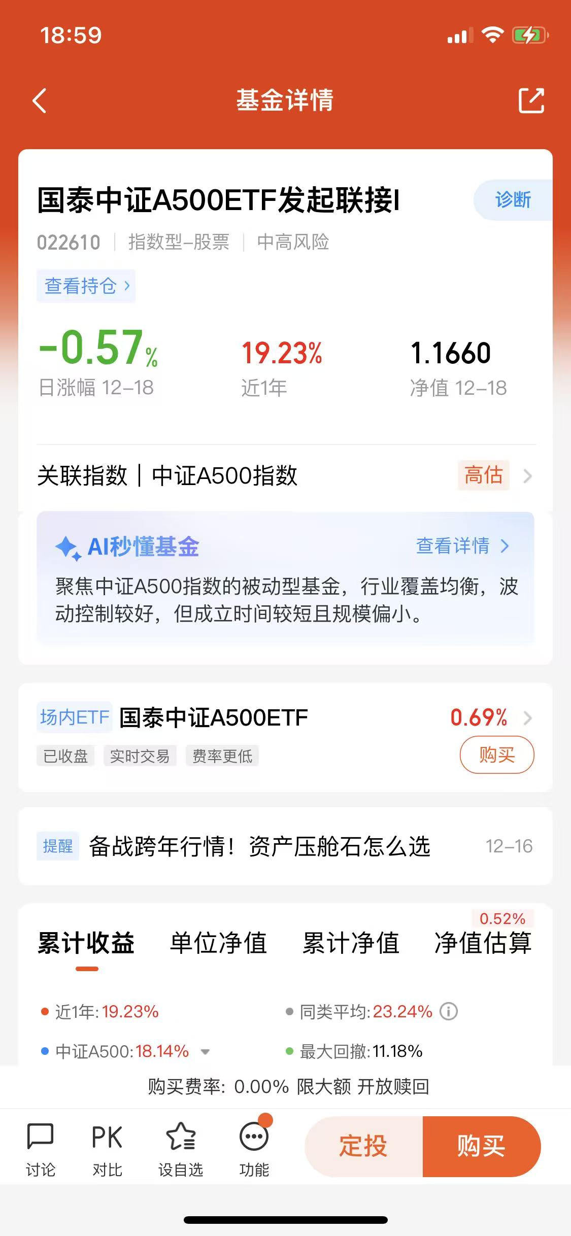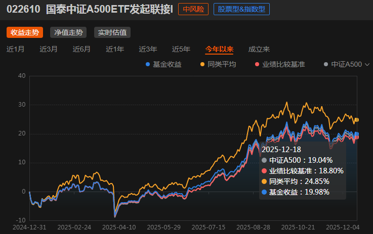 转眼12月也快结束了,2025年即将画上句号,“跨年行情”又成了市场热议的焦点。年末的市场,震荡幅度不算小,板块轮动快得让人眼花缭乱,当前切勿追涨杀跌,白鹤君认为此时不如把目光放在稳健的宽基上——这也是我一直以来的投资逻辑,而我持有的国泰中证A500ETF发起联接I(022610),恰恰成了这份稳健里最惊喜的存在。