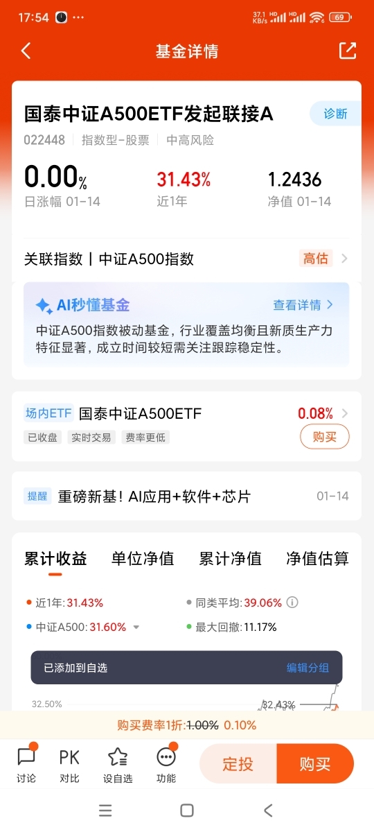 国泰中证A500ETF是市场公认的“人气王”。数据显示,其持有人户数已突破10万户,个人投资者持有份额占比约34%,这意味着它的交易生态非常健康,既有机构的压舱,也有散户的活跃。