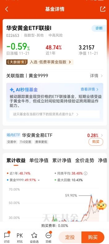 对比C份额,I份额的销售服务费低至0.1%(C类是0.35%),持有超7天还免赎回费,每年综合费率能省0.25%。别小看这一点,长期持有下来就是实打实的收益增厚。我已经把它加自选了,打算用它做资产配置里的“稳压器”,既能分享黄金行情,又能靠低费率多赚一笔,这才是“金”打细算的投资~@华安基金