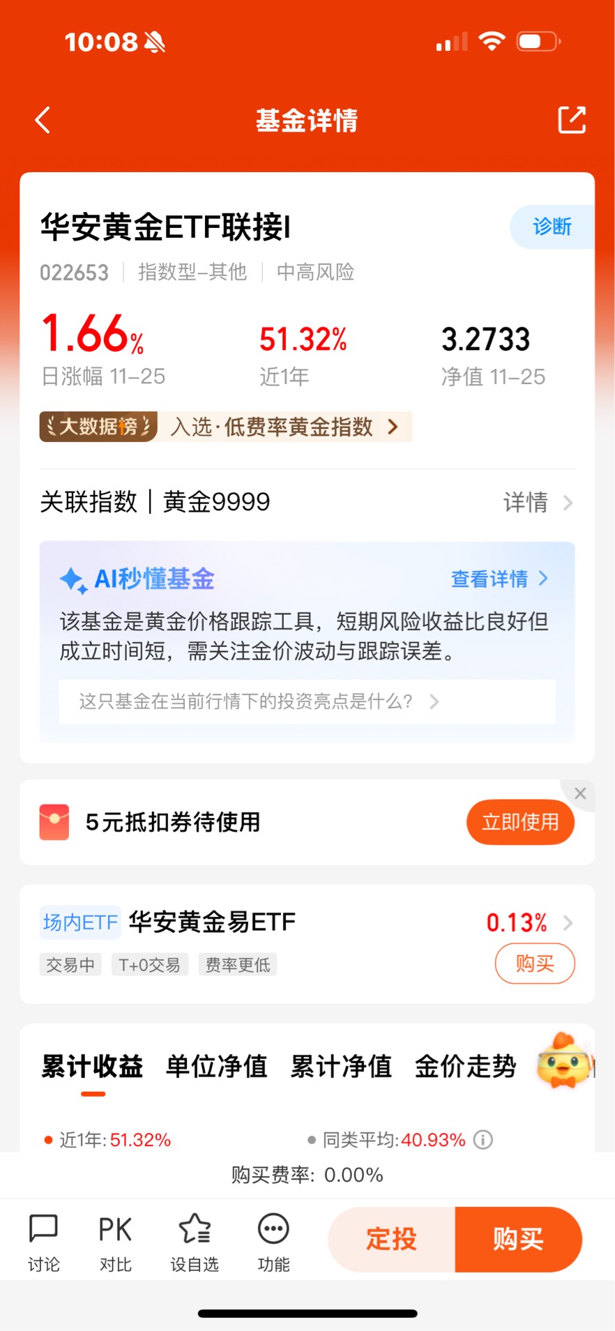 4. 成本透明省开支:无隐性费用,费率比同类份额低,长期持仓能明显感受到“省下来的费率就是额外收益”,尤其适合长期配置黄金的需求。