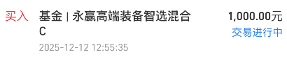 我加仓$永赢高端装备智选混合发起C(OTCFUND|015790)$1000元,这只重仓卫星互联网和商业航天,本来想等跌了加仓呢,没想到直接6连涨,今天盘中又一度飘红,等不及我就先买上一笔,后面看机会再继续提升仓位。