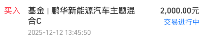 我加仓$鹏华新能源汽车混合C(OTCFUND|016068)$2000元!最近CPO涨的好,固态电池就略弱一些,都是主线板块,一般会轮动上涨,趁这两天调整我继续定投低吸便宜筹码,毕竟固态电池前景还是很明确的!