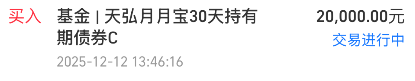 我继续存$天弘月月宝30天持有期债券C(OTCFUND|022306)$20000元!月月宝昨天又收了1个蛋,本周稳稳收蛋真香,预计年末债市持续回暖,今年收益率还能再上一层楼,以现有收益率来看,今年存1万到天弘月月宝能赚213元,但如果放到宝宝类货币基金约赚110-130元,每1万就能多赚80-110,而且近1年最大回撤也才0.1%,仅用了10天就给收复了,我觉得天弘月月宝30天持有期债券C适合存钱。
