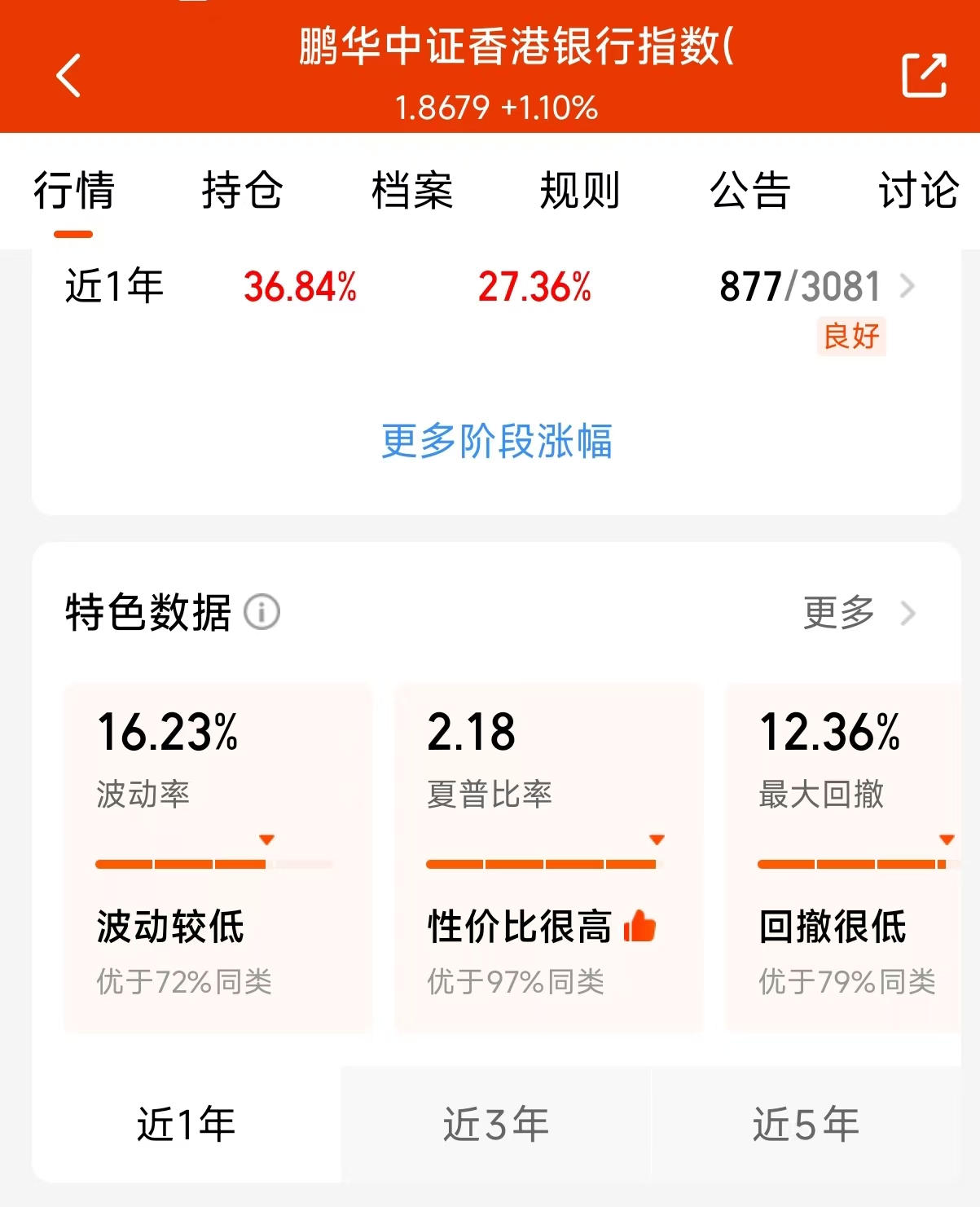 哎,市场情绪变化快,前两天还好好的,转眼就可能调整。这种时候,我就比较留意那些有自身支撑的板块。港股银行板块最近挺坚挺,$鹏华香港银行指数(LOF)C$(010365)也跟着受益。它主要投资那些分量足、分红也相对稳定的港股银行股,市场不好时,这些特点反而成了优点。与其跟着短期的热点跑,不如考虑一下这种有自身逻辑的产品,应对波动可能更从容一些。#慢慢投基路 你悟出了哪些投资哲学?#