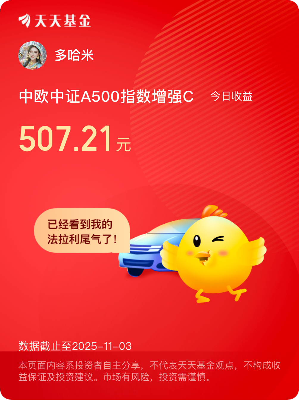 $中欧中证A500指数增强C[022675]$ #晒收益#