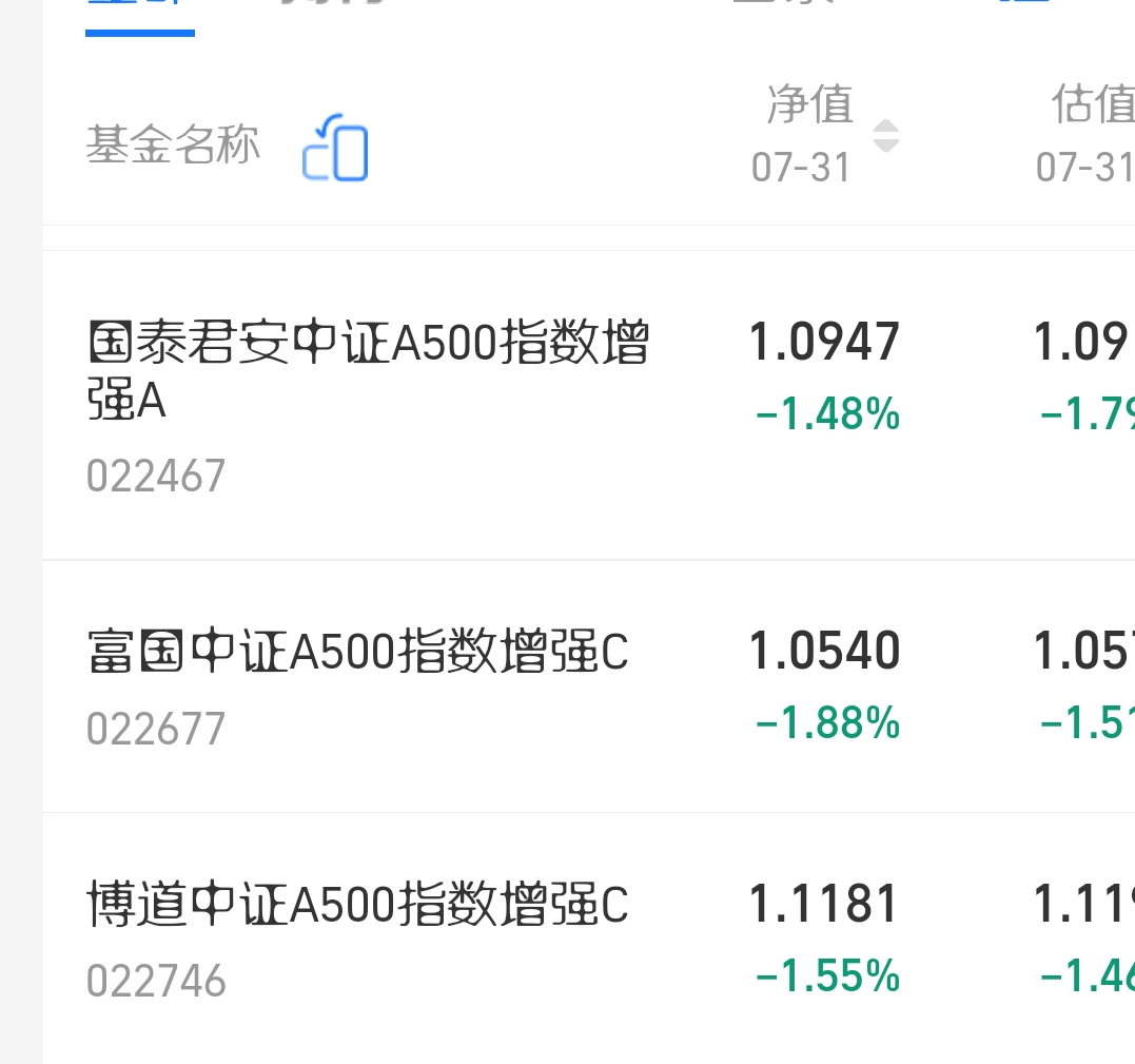 $国泰君安中证A500指数增强A$ 下跌1.48%
