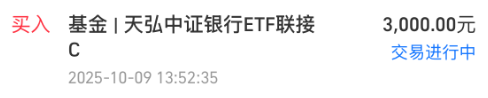 我加仓$天弘中证银行ETF联接C(OTCFUND|001595)$3000元!跟踪的中证银行指数盘中一度跌超1%,这会看只跌0.3%左右了,说明有资金流入,毕竟这波调整时间不短了,而且我前面也止盈了不少银行,整好趁调整可以低吸回来,银行防御属性比较强,是我资产配置里不能少的压舱石。